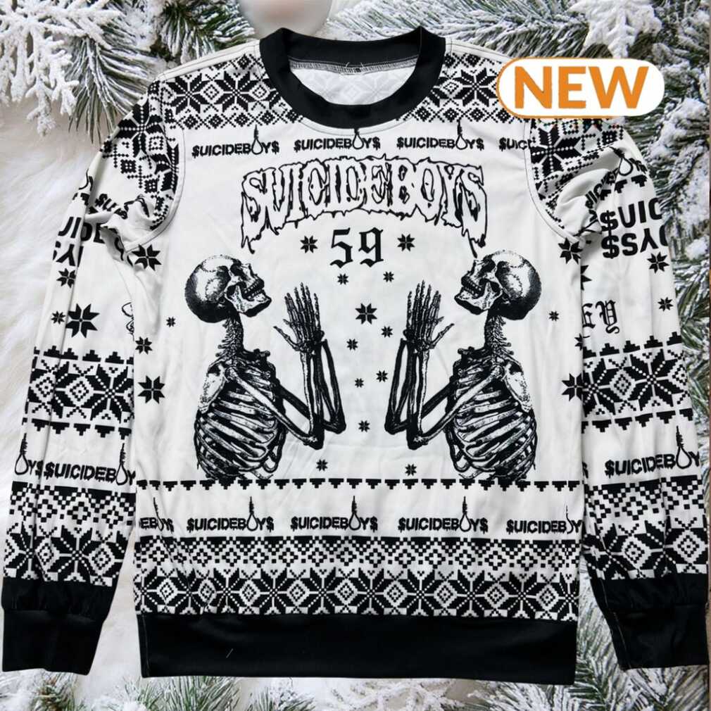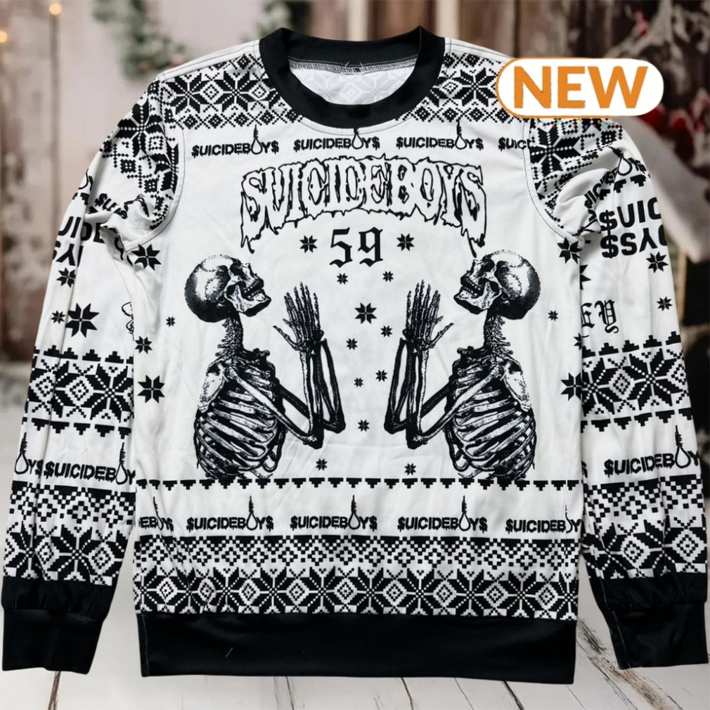 Christmas just got a whole lot darker. Forget those cutesy reindeer and雪花 sweaters – this Suicideboys 2024 Christmas Ugly Sweater lets you rep your favorite rap duo while spreading some holiday fear. Imagine showing up to the family gathering in this bad boy. Uncomfortable aunties? Check. Jealous cousins? Guaranteed. You’re not just celebrating Christmas; you’re declaring your allegiance to the $uicideboy$ army.