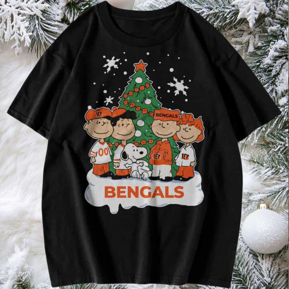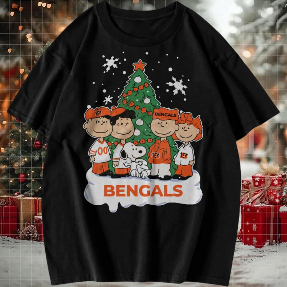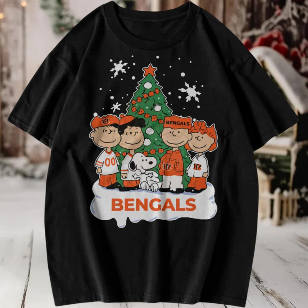This shirt is ideal for Bengals fans and Peanuts lovers who want to celebrate the holidays in style. Wear it to holiday events, games, or any casual occasion to spread some team spirit and Christmas cheer. It also makes a fantastic gift for the Bengals-loving Peanuts enthusiast in your life, making their holiday season even more special with this unique and festive tee.
