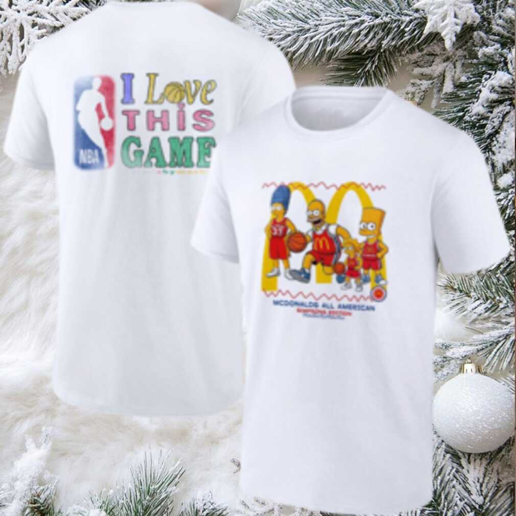This “The Simps McDonalds All American I love this game cartoon shirt” is a mashup of two iconic brands that evoke feelings of nostalgia and humor. This tee features a unique design blending The Simpsons characters with McDonald’s imagery, perfect for anyone who loves cartoons and classic American fast food. Made from a soft and breathable cotton blend, this shirt is comfortable enough for everyday wear. It’s available in various sizes for a relaxed and easy fit.