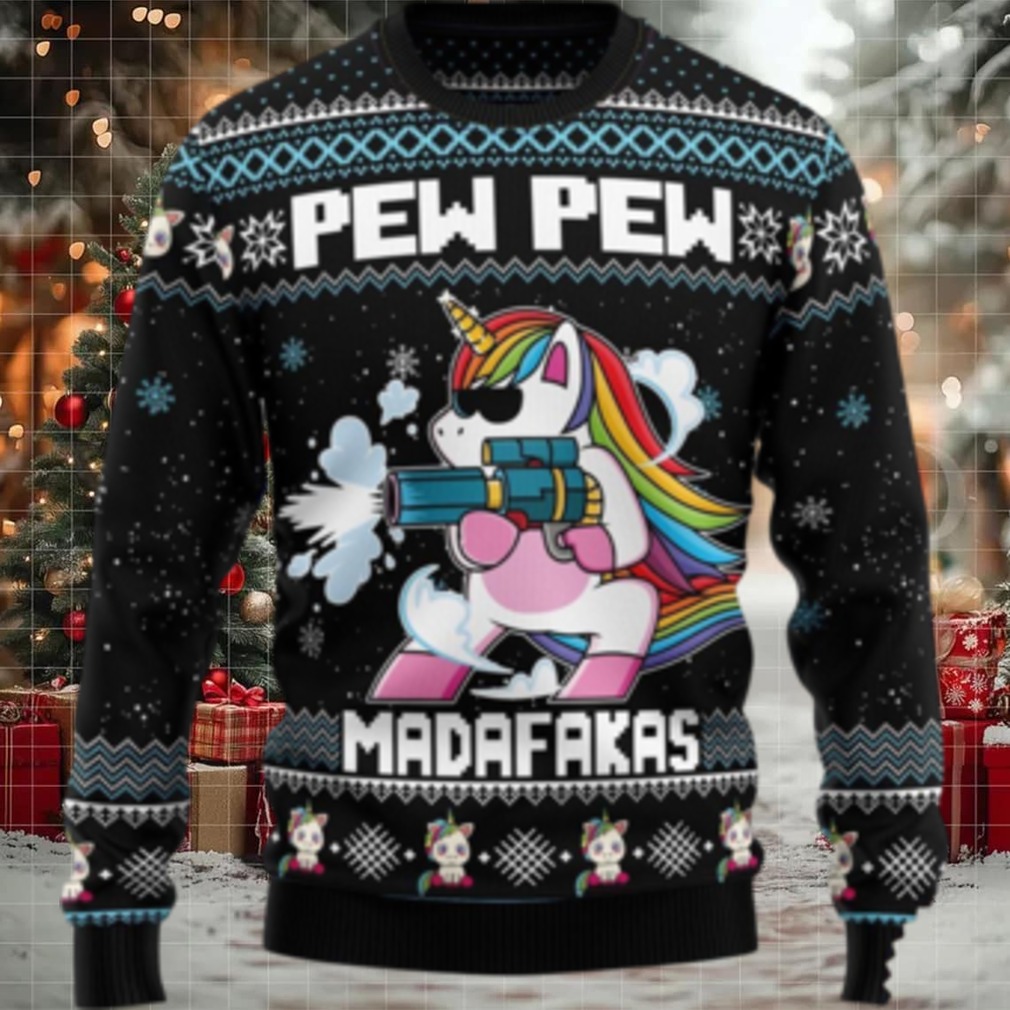 Unleash your inner unicorn this Christmas! This “Unicorn Pew Pew Ugly Christmas Sweater” is the perfect way to spread holiday cheer with a touch of magic and a whole lot of fun. Get ready to turn heads and spark smiles wherever you go!