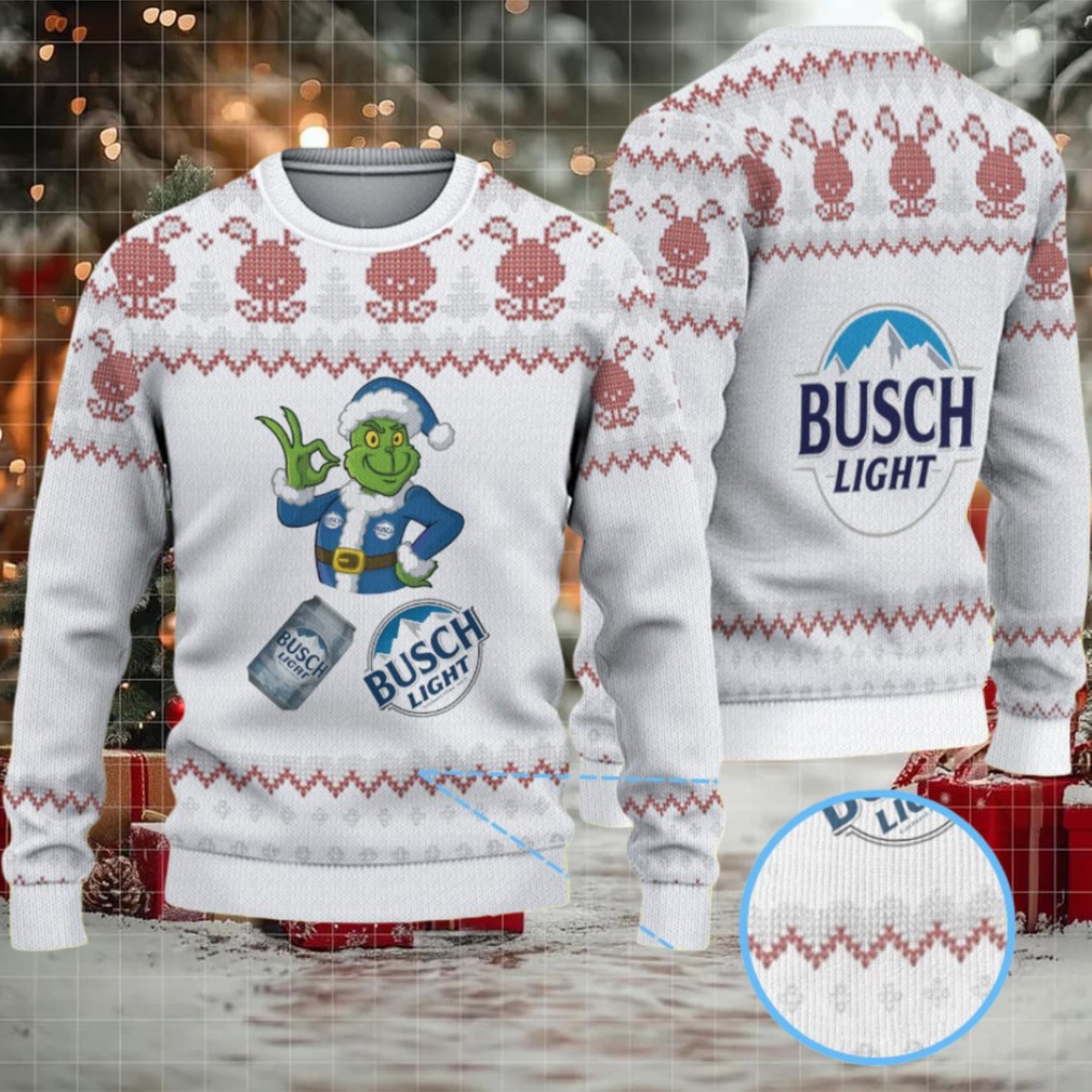 This “Busch Light Christmas Grinch” Ugly Christmas Sweater is your ticket to winning the holiday party. Picture pairing it with jeans or leggings. Crafted from a soft knit material, it ensures you stay cozy while showcasing your unique holiday style. It solves the problem of blending in with the crowd and makes you a memorable guest. The pixel reindeer pattern gives a touch of modern flair to a classic theme. Main selling points: comfortable fit, eye-catching design, and conversation-starting potential.